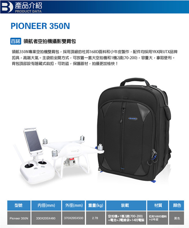 ■ 空拍機+1機2鏡(700-200)+電池+2電線袋+14吋電腦