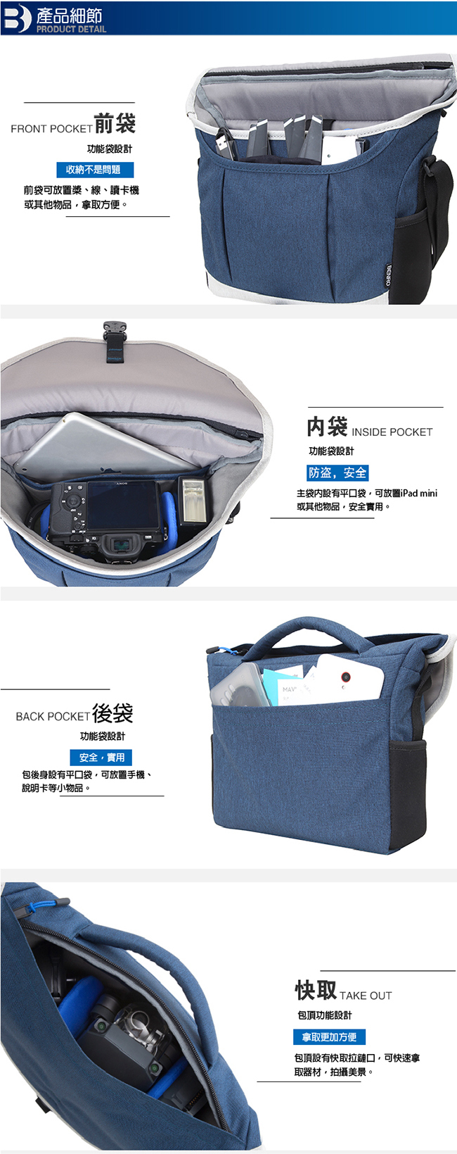 ■ 前袋可放置槳、線、讀卡機或其他物品,拿取方便