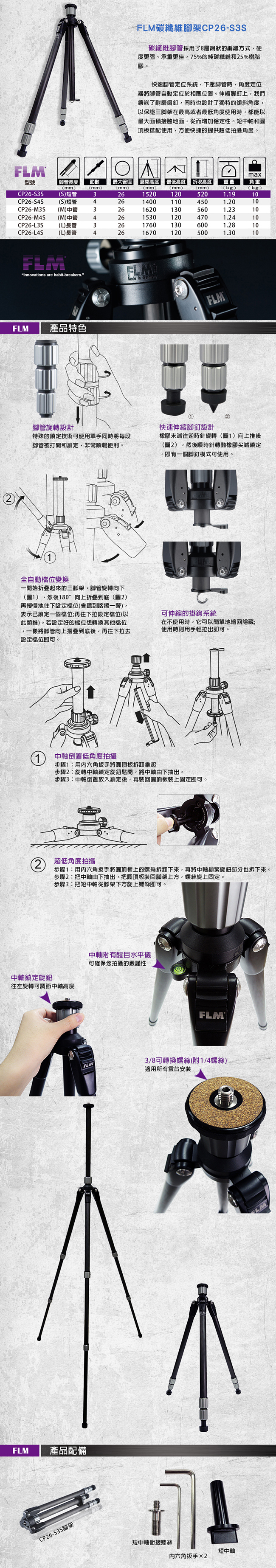 ■FLM碳纖維腳架CP26-S3S