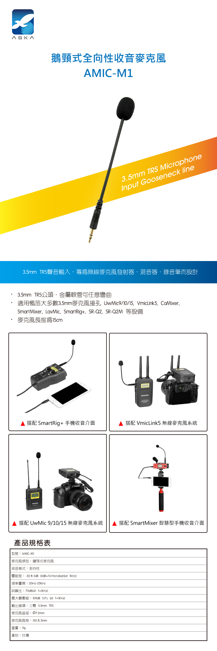 • 適用3.5mm TRS麥克風接孔等設備