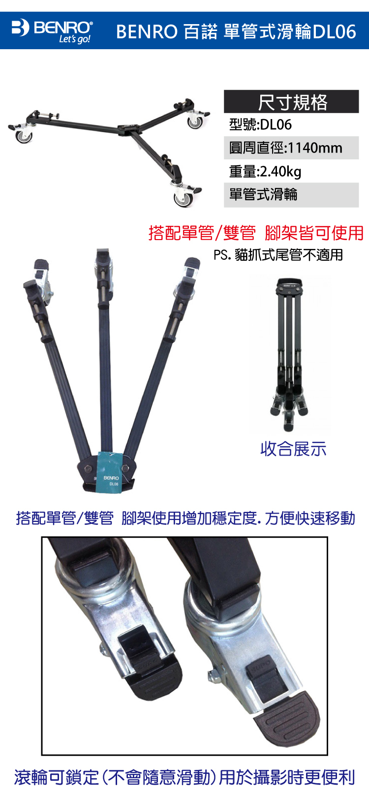• 搭配滑輪攝影,方便快速移動