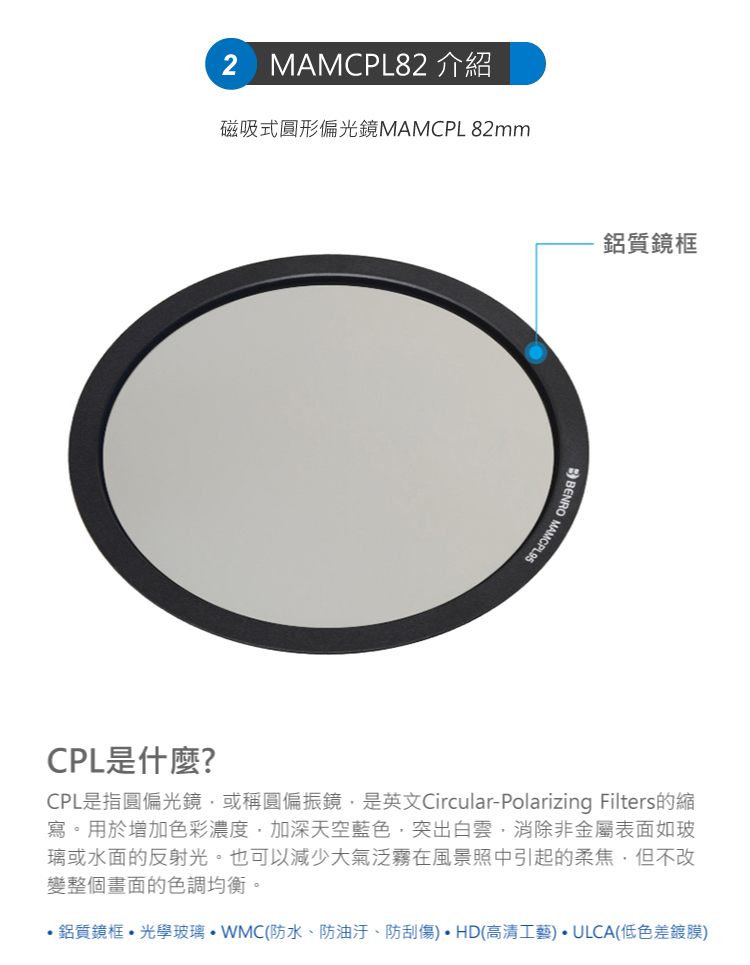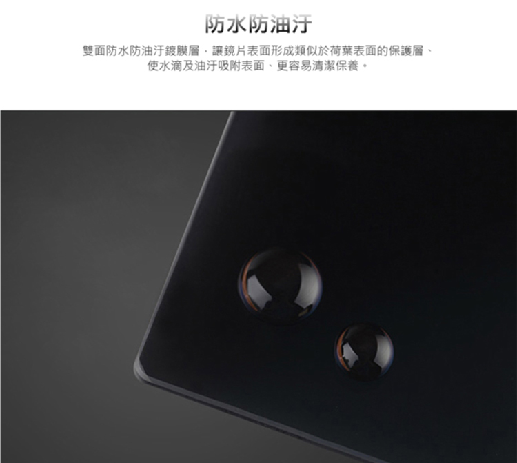 • 雙層WMC鍍膜 (防水、抗油污、防刮傷)
