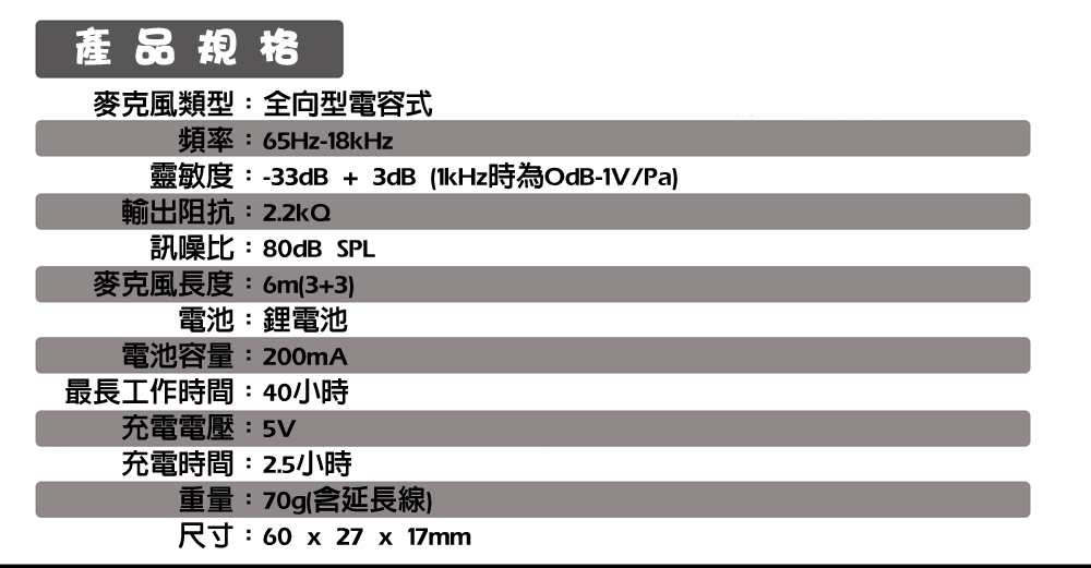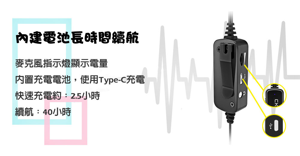 • 設有電量指示燈,內置電池,使用Type-C充電