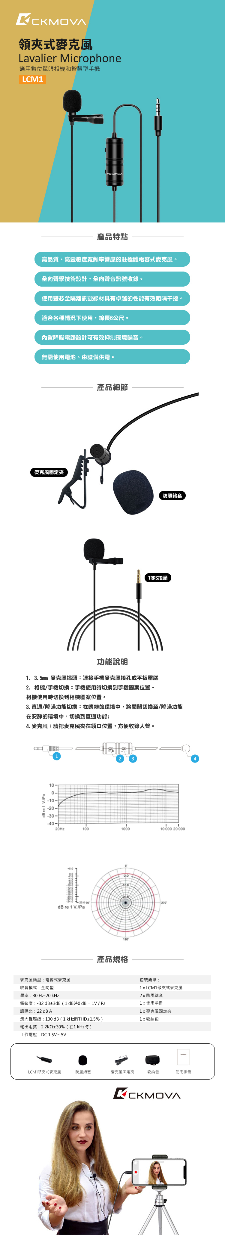 • 高品質、高靈敏度寬頻率響應的駐極體電容式麥克風