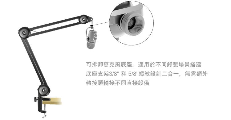■可拆卸麥克風底座3/8"和5/8"二合一螺紋設計