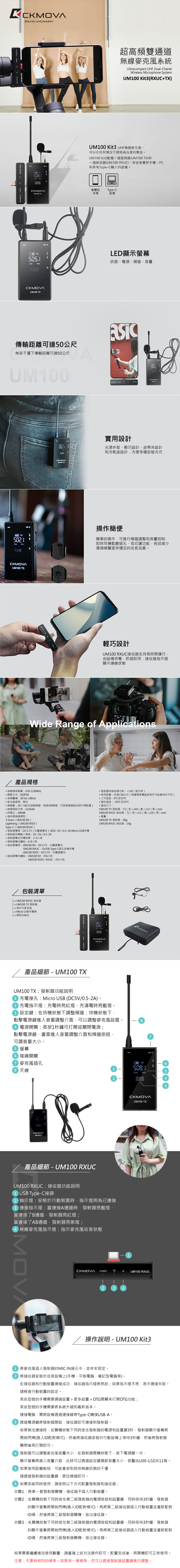 CKMOVA UM100 Kit3(RXUC+TX) 一對一無線麥克風套組