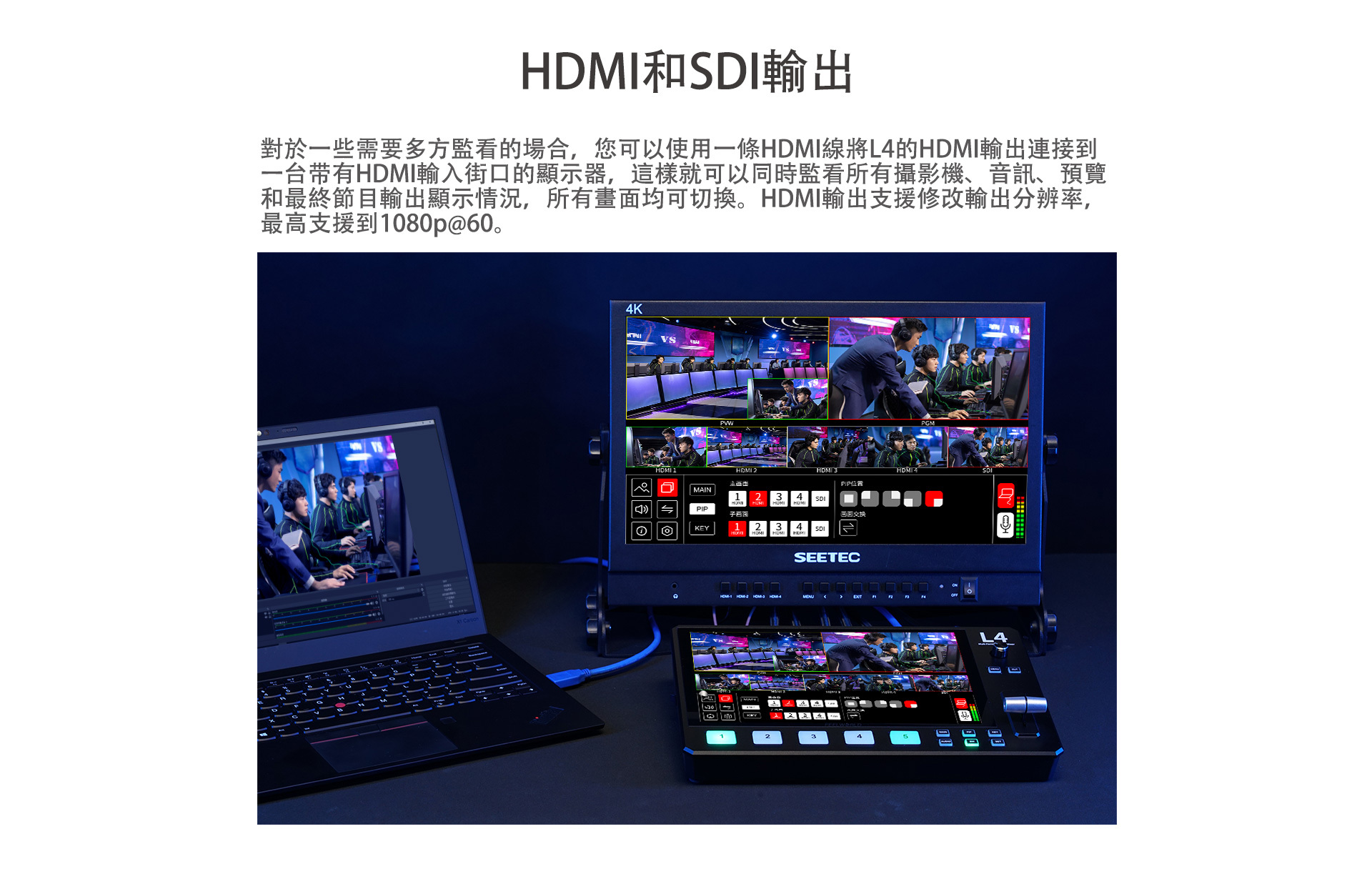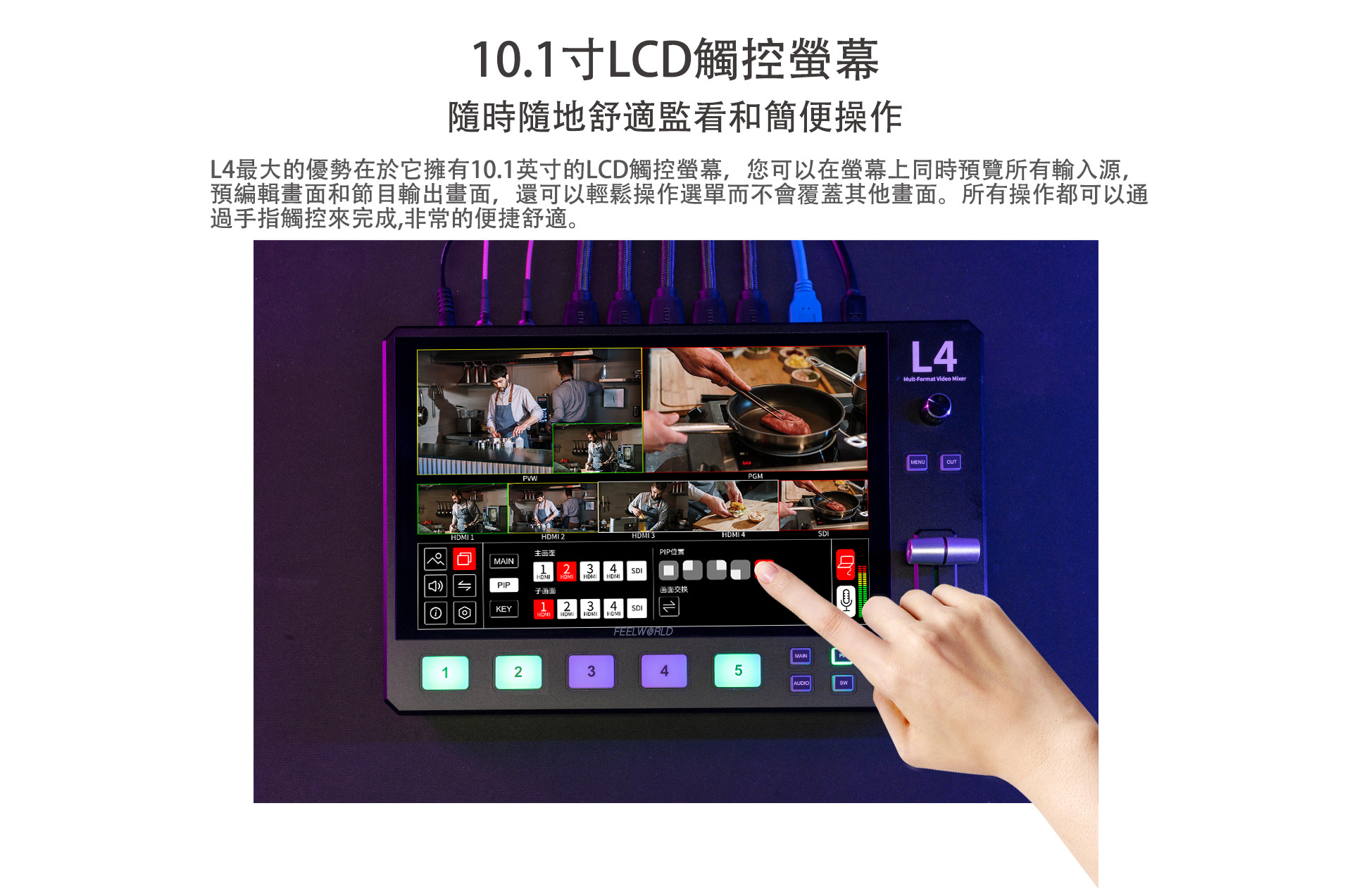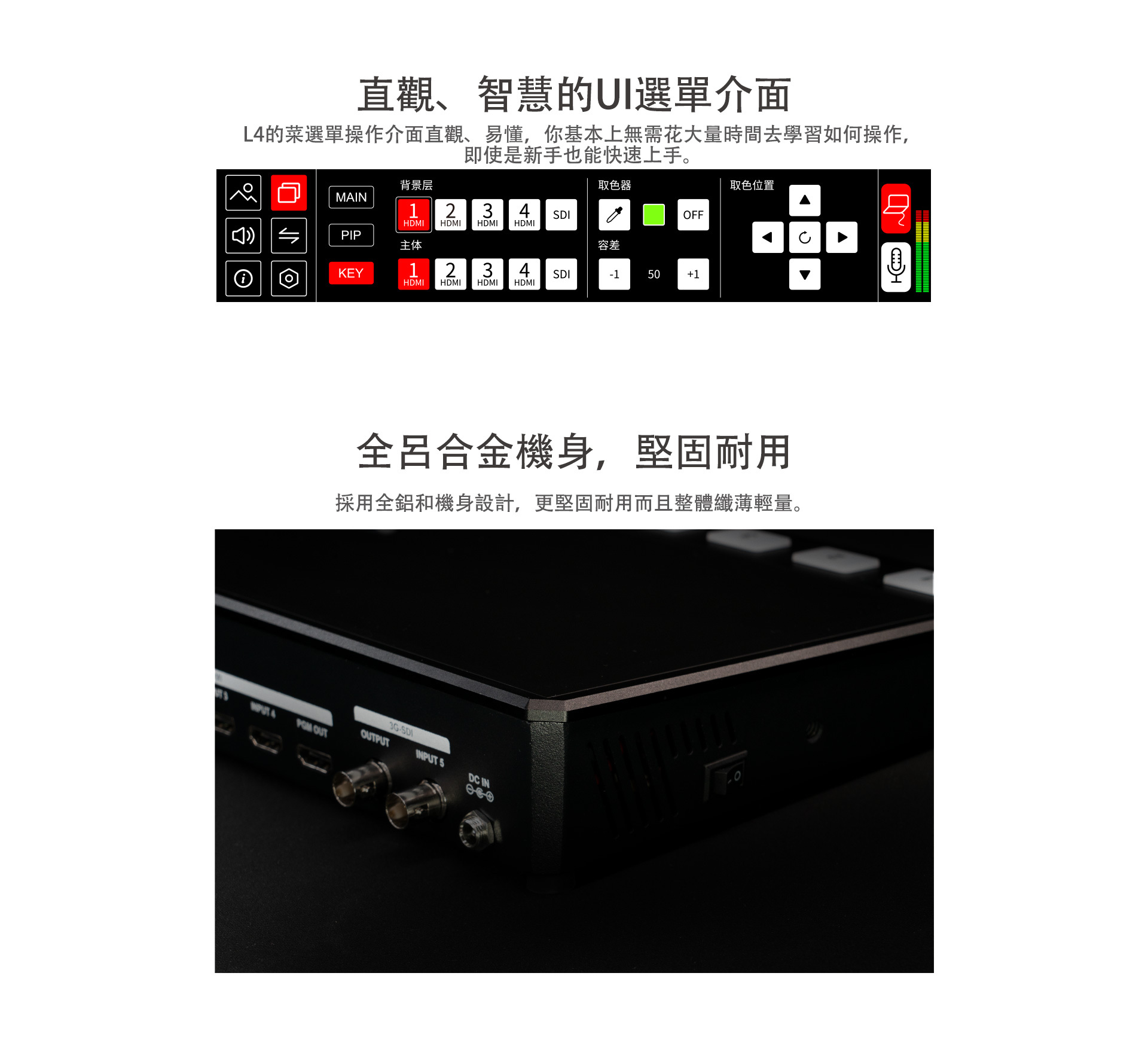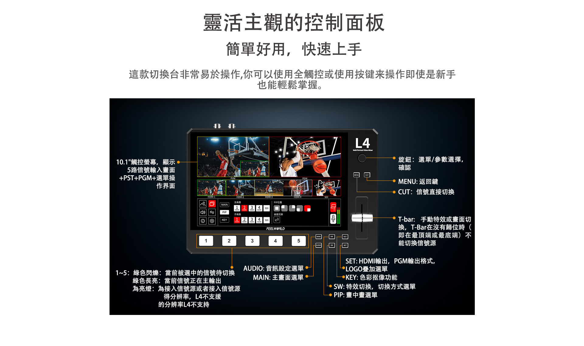 可以同時輸入5路訊號源,輕鬆應對多機位現場製作