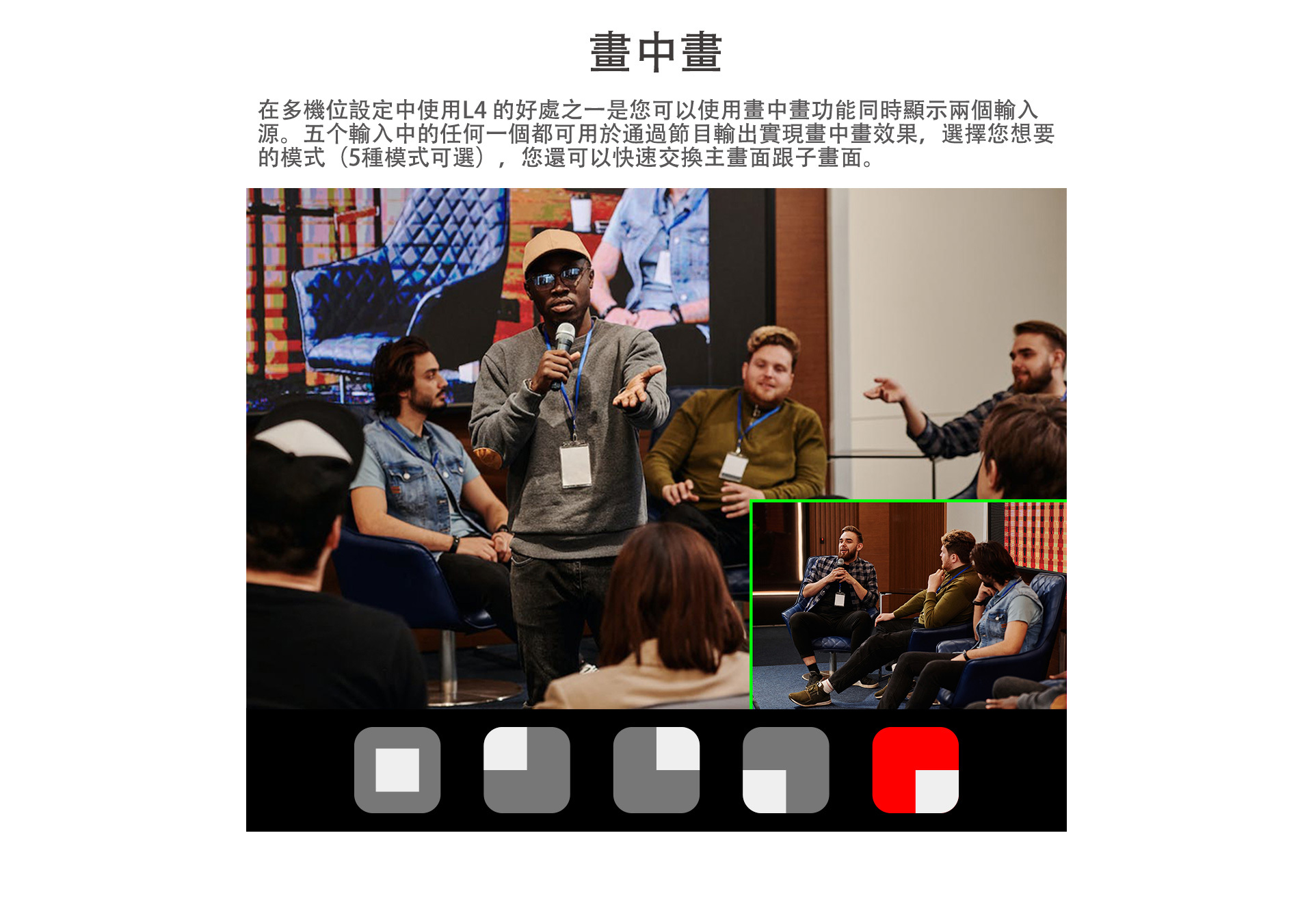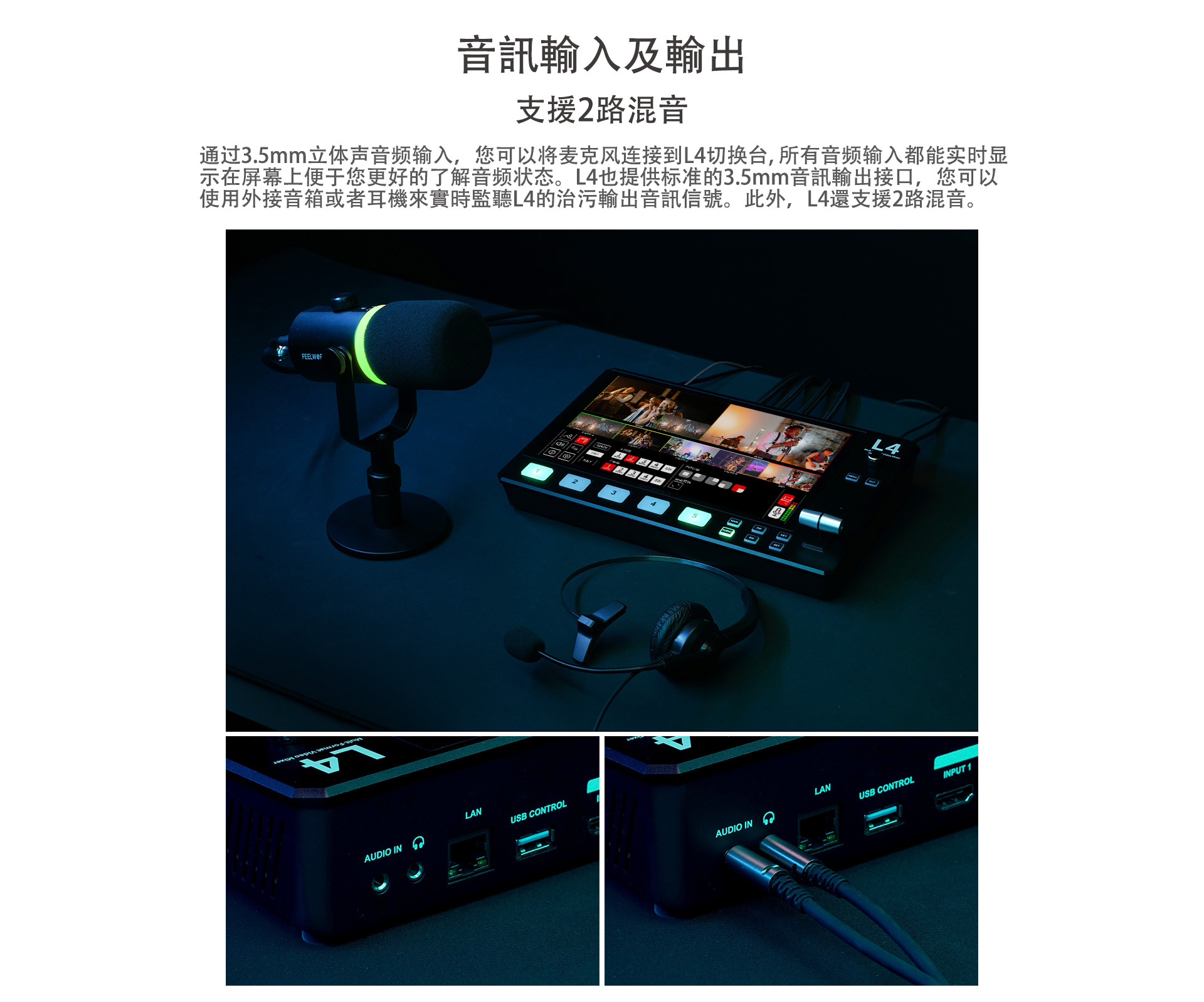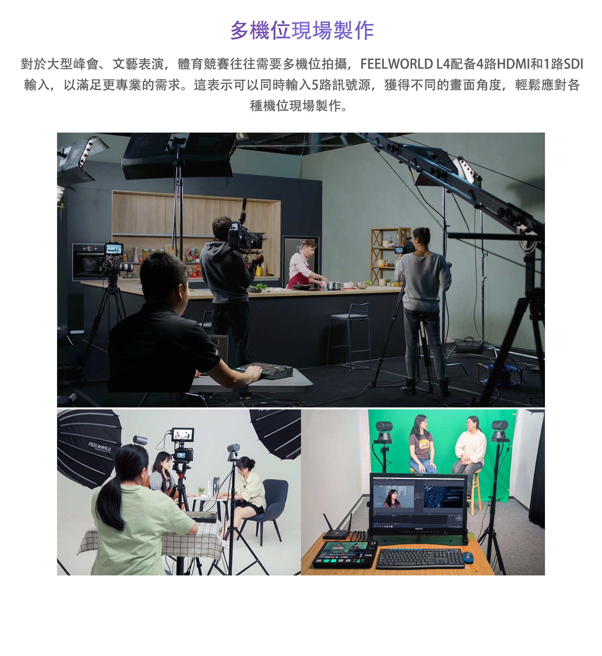 可以同時輸入5路訊號源,輕鬆應對多機位現場製作