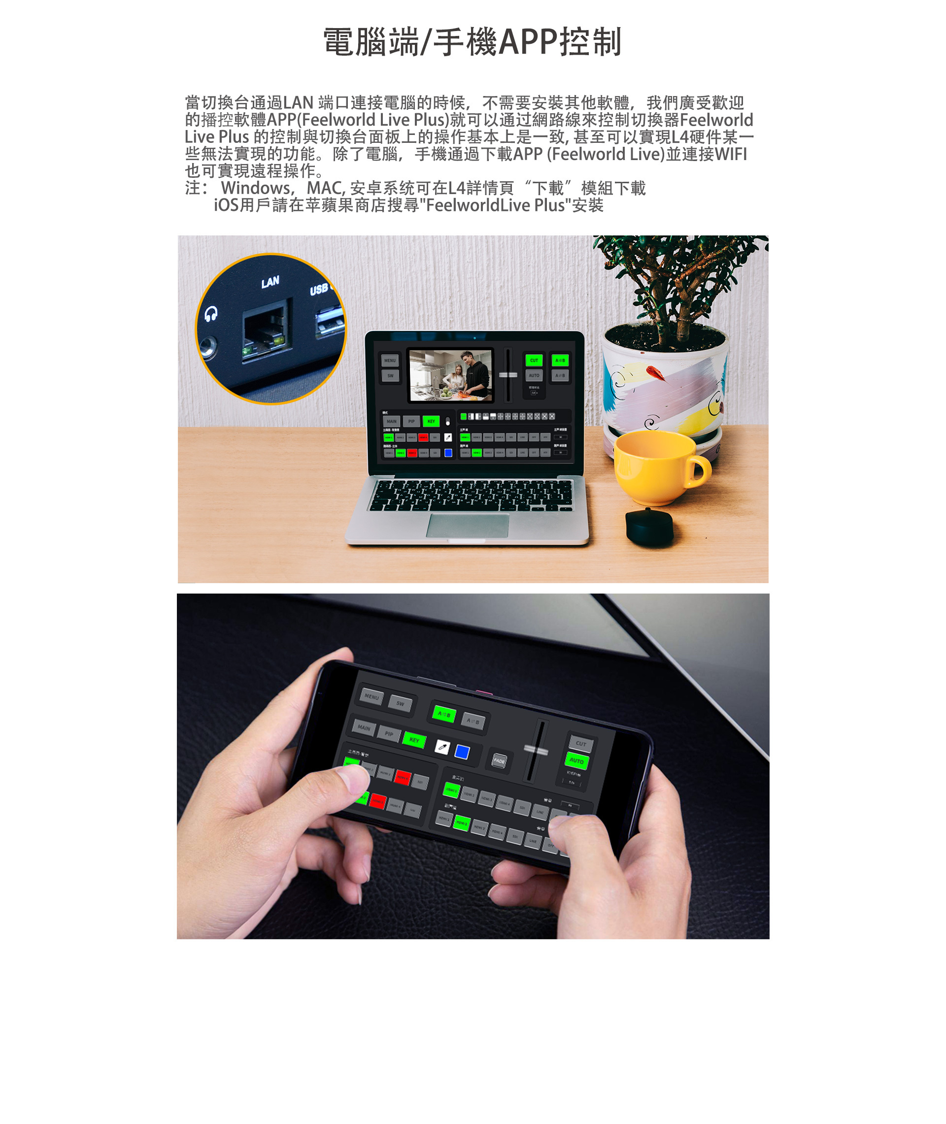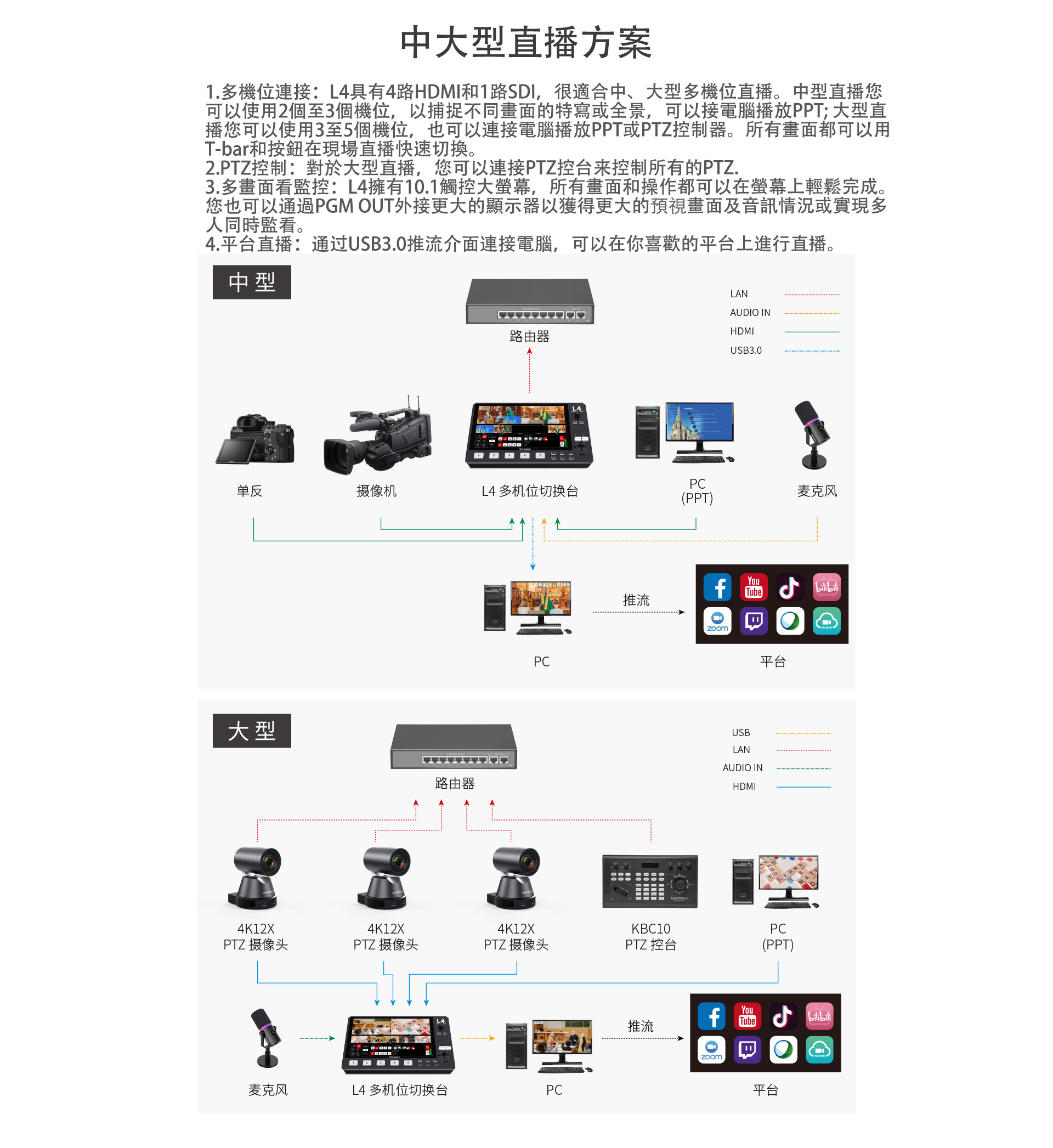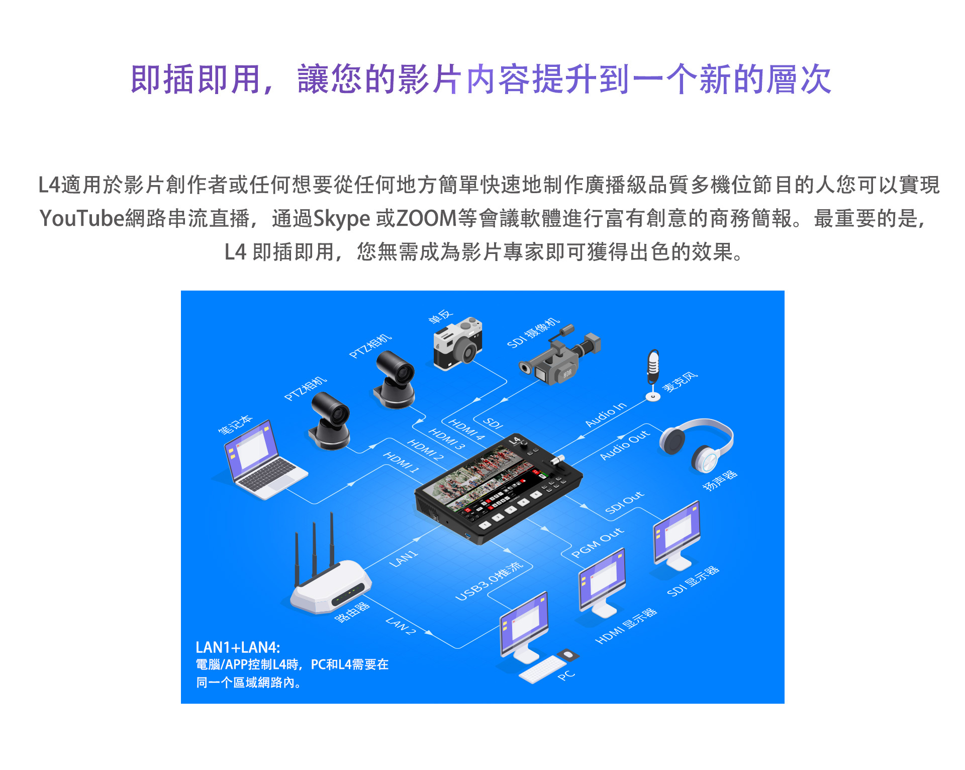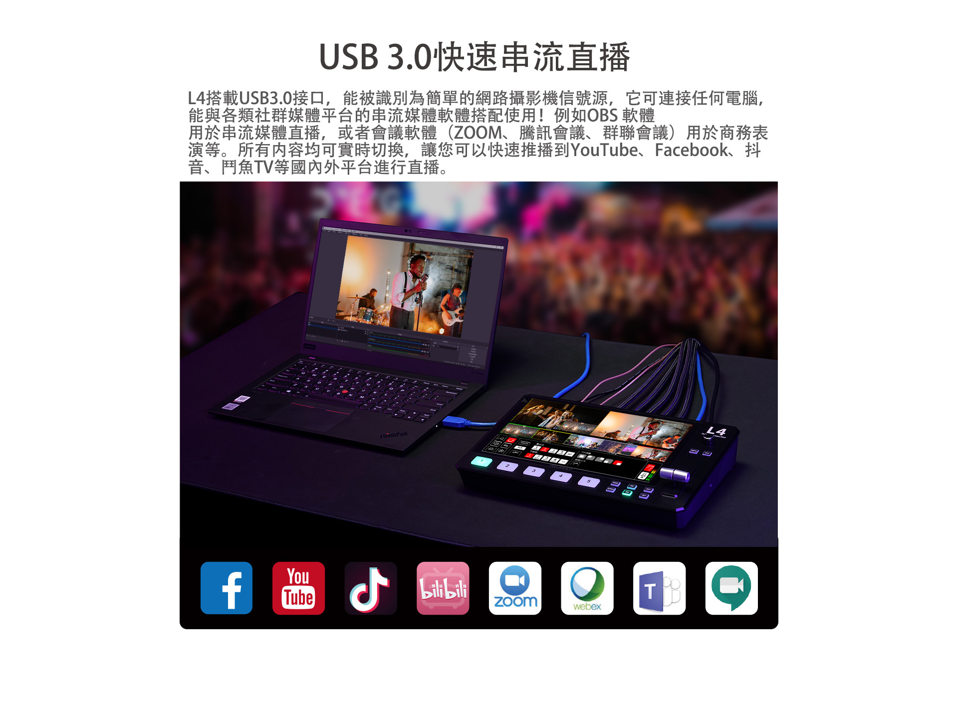 可以同時輸入5路訊號源,輕鬆應對多機位現場製作