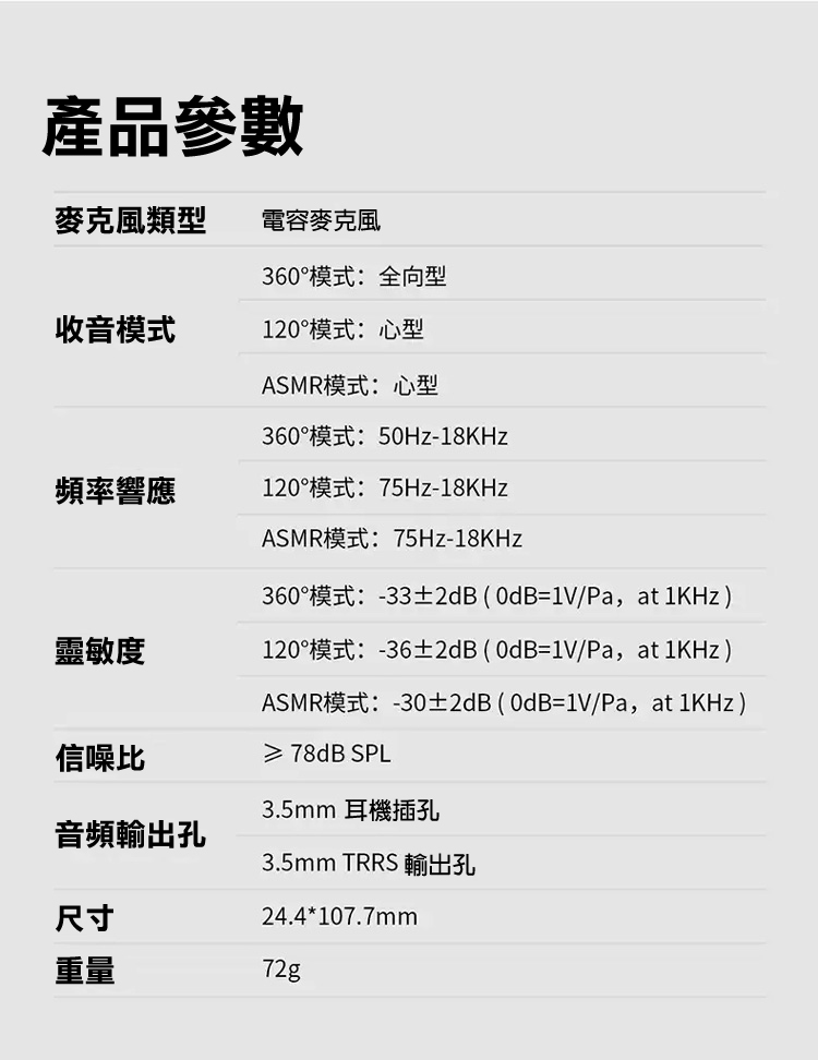■120°/360°/ASMR收音模式,專為滿足不同需求而設計