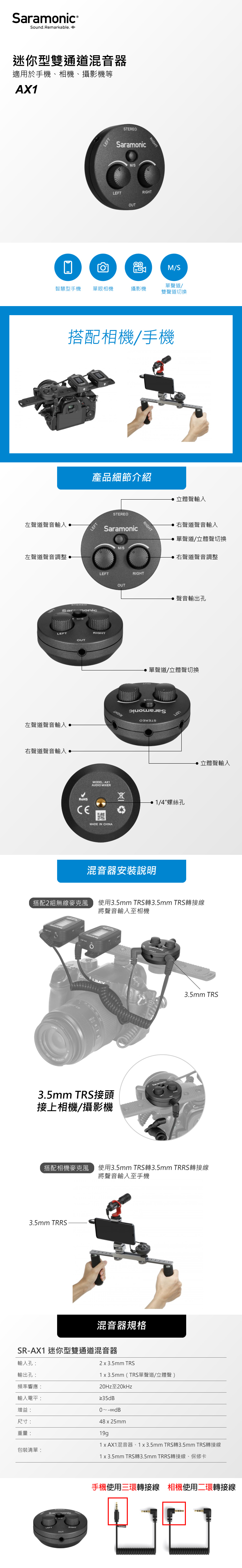 • 2 x 3.5mm 單聲道輸入,1 x 3.5mm 立體聲輸入