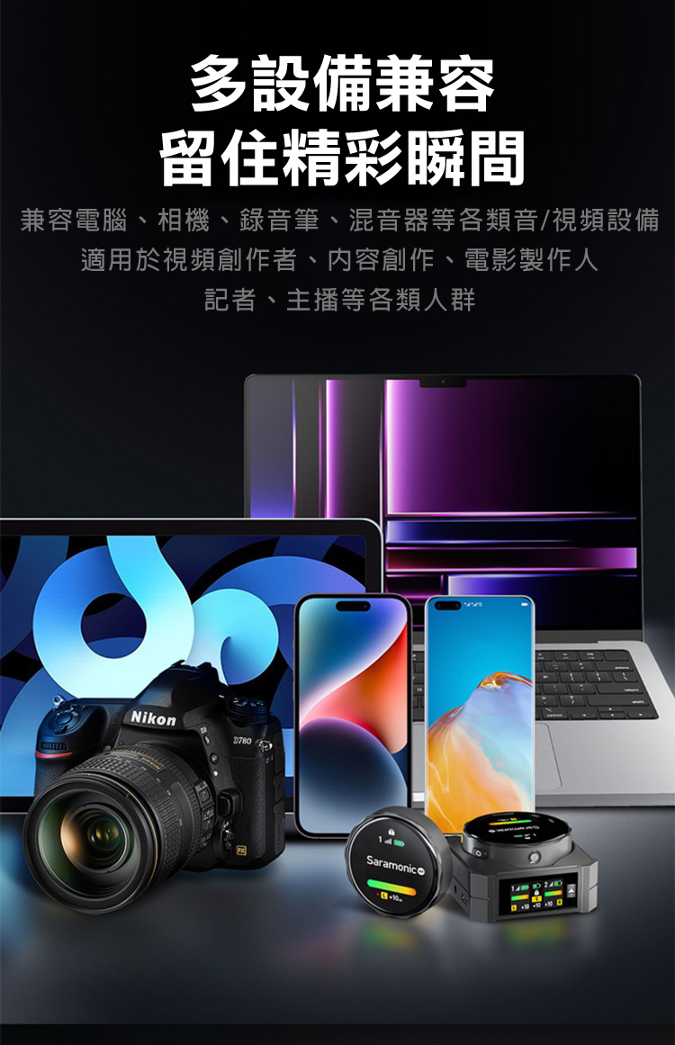 ■為相機、移動設備、錄音機、混音器和其他3.5毫米TRS或TRRS輸入和USB-C設備提供高品質聲音