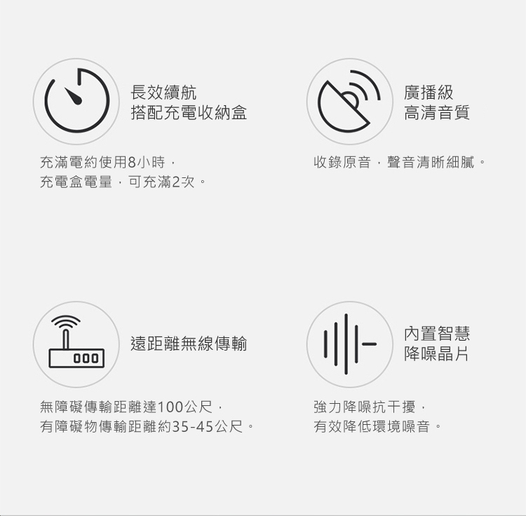 • 8小時長效續航,搭配充電收納盒