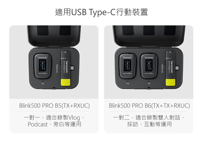 Saramonic楓笛 Blink500 Pro B5(TX+RXUC) 一對一無線麥克風套裝