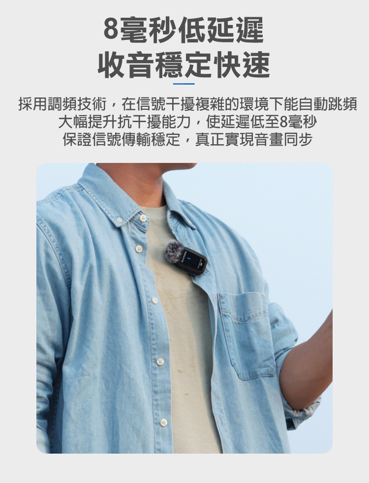 ■發射器僅重16.5g,自帶背夾,舒適完成錄製