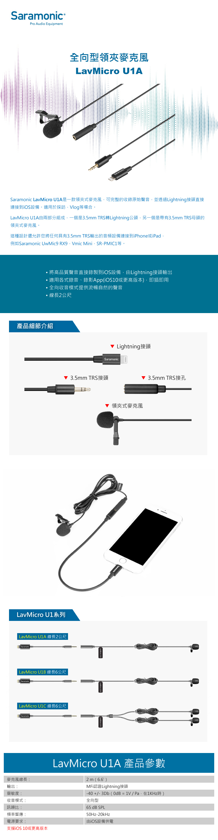 • 適用各式錄音、錄影App(iOS10或更高版本),即插即用