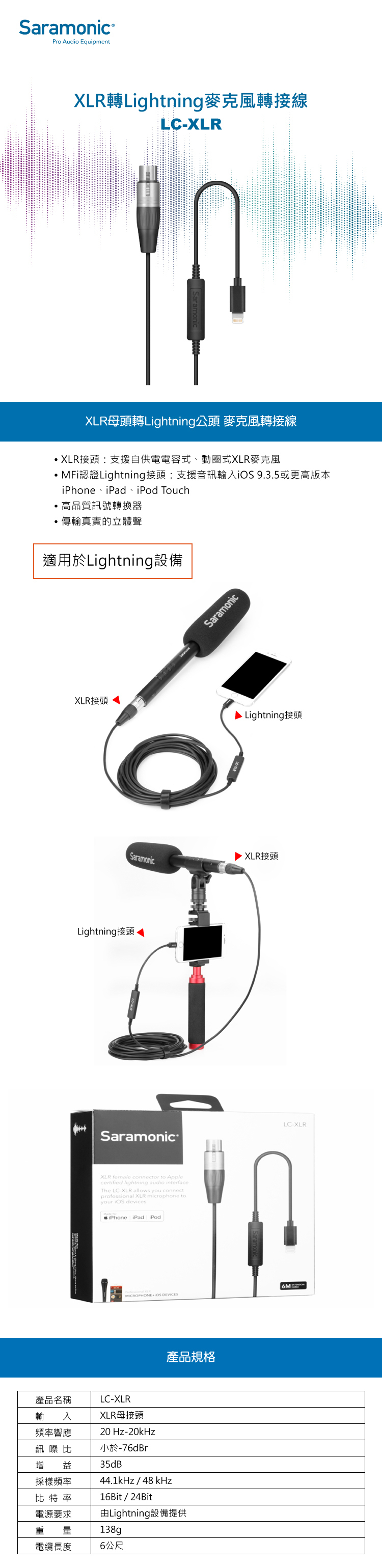 • MFi認證Lightning接頭:支援音訊輸入iOS 9.3.5或更高版本的iPhone、iPad、iPod Touch