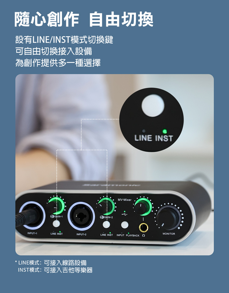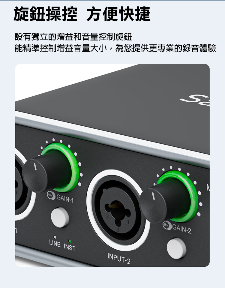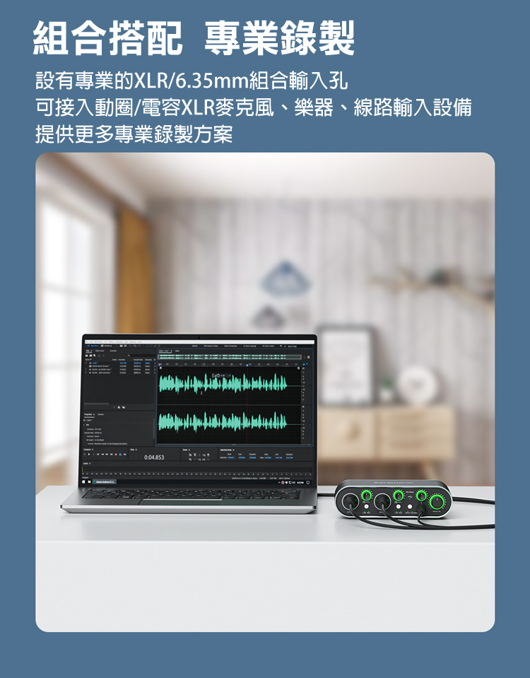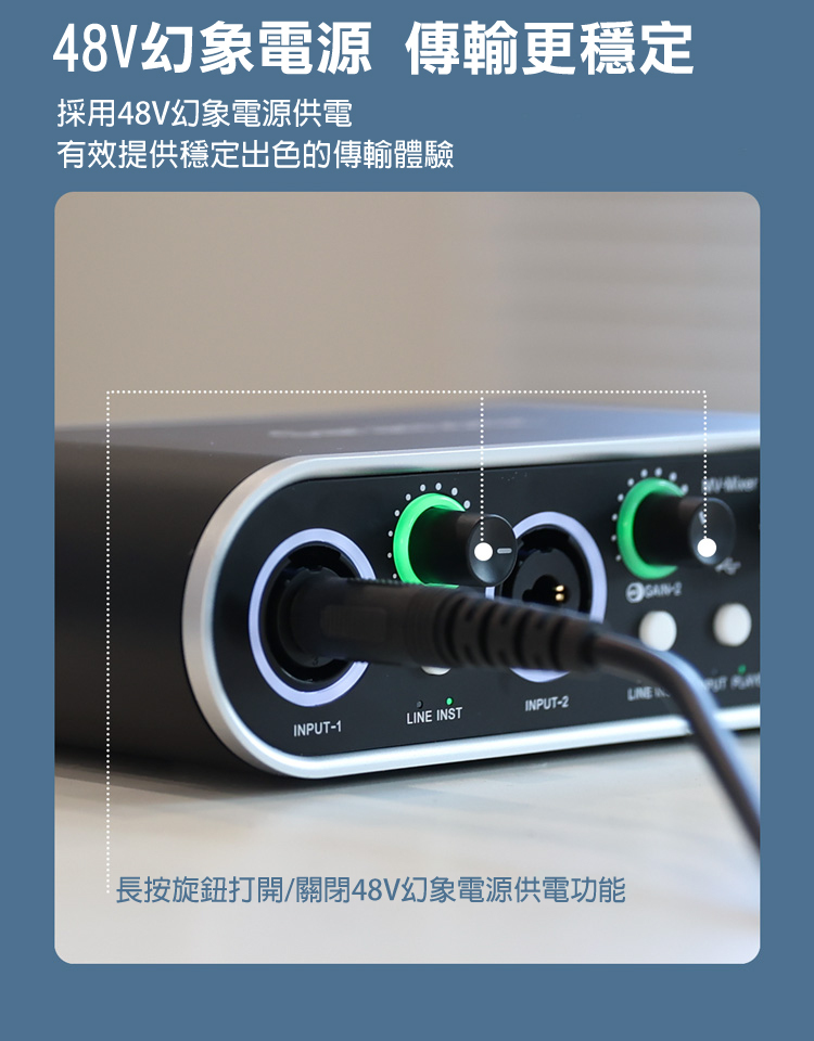 ■XLR/6.35mm組合輸入孔,可接入動圈/電容XLR麥克風、樂器、線路輸入設備