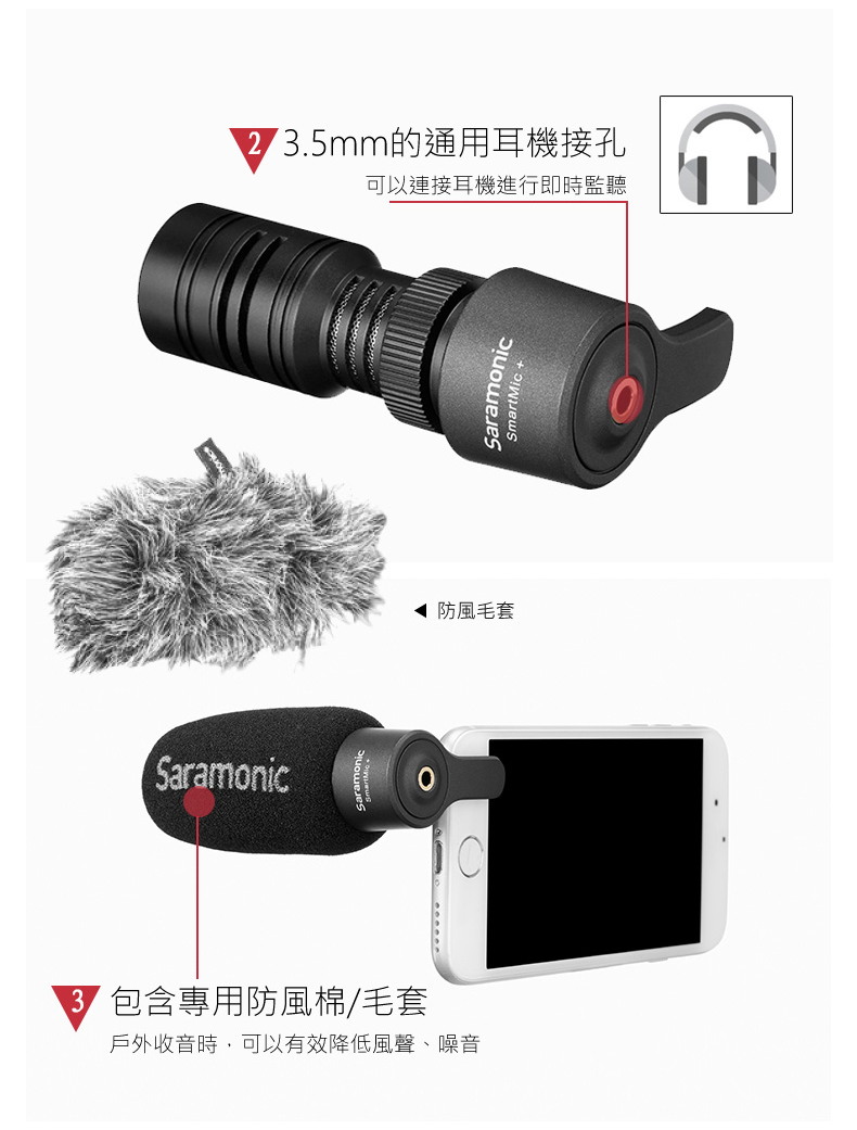 • 3.5mm耳機輸出,用於收聽播放和即時監聽