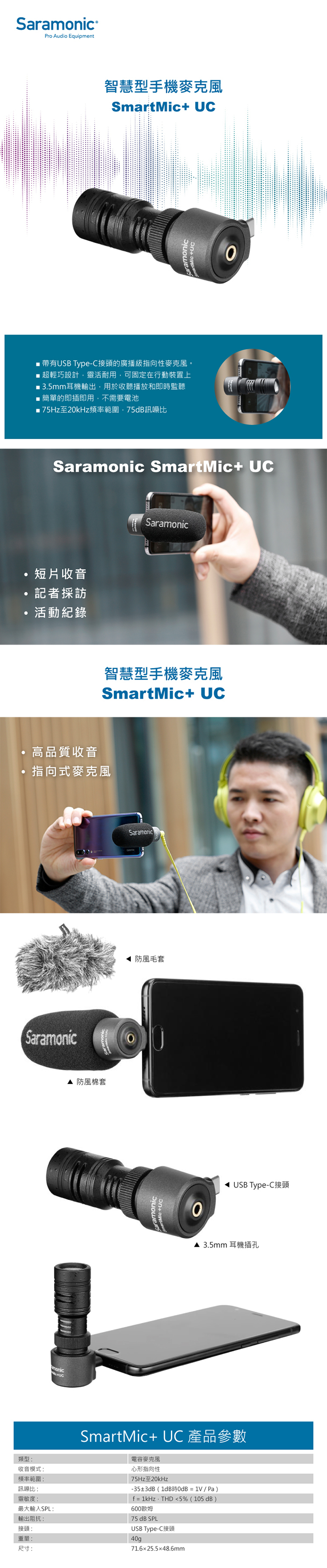 • 適用USB Type-C接頭的廣播級指向性麥克風
