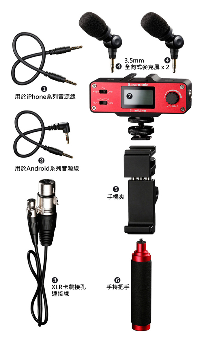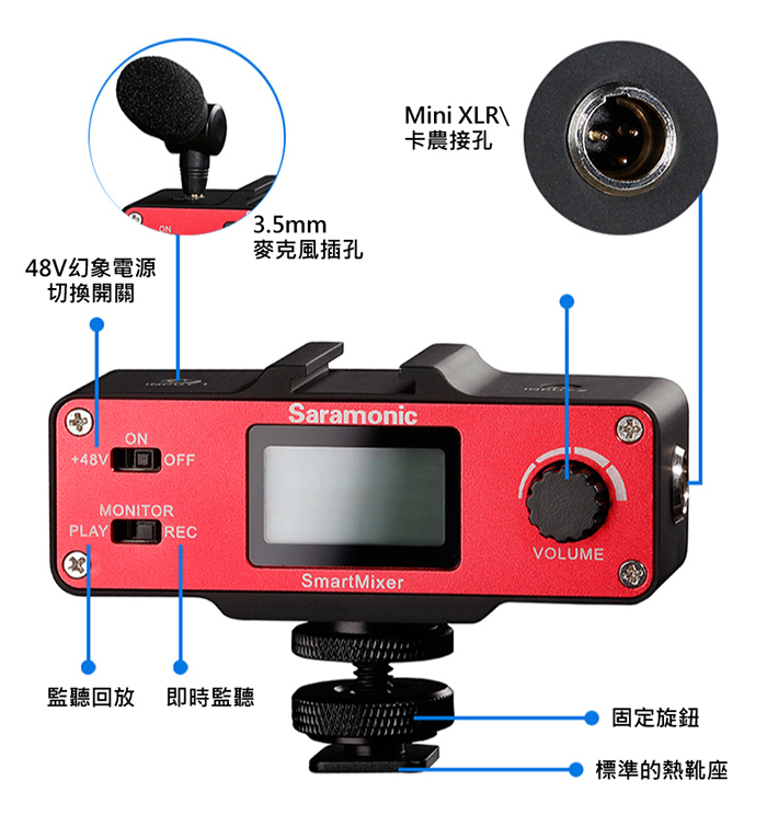 • 一個Mini XLR麥克風輸入(包括迷你XLR轉標準XLR)