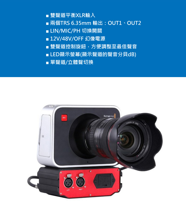 • 雙聲道平衡XLR輸入