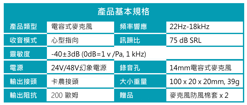 • 含麥克風支架、防風棉套