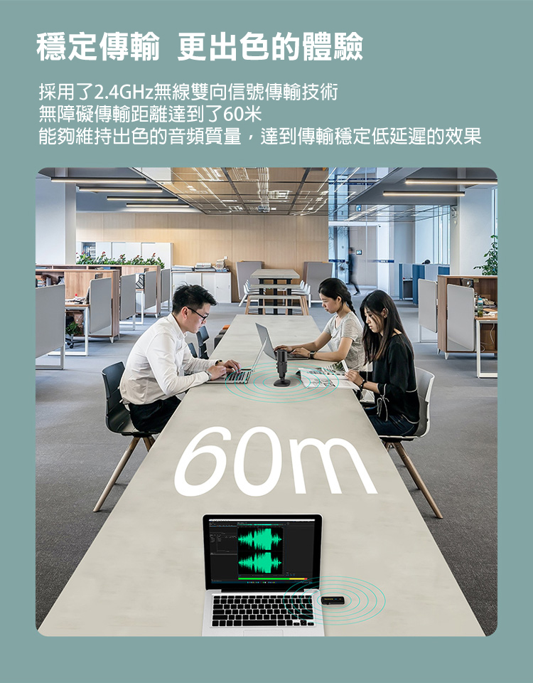■2.4GHz無線傳輸技術,工作範圍可達60m