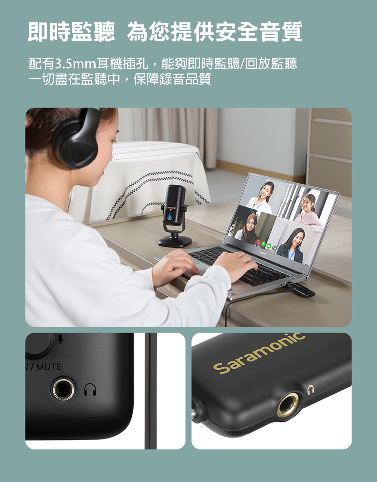 ■用於即時/回放監聽的3.5毫米耳機插孔