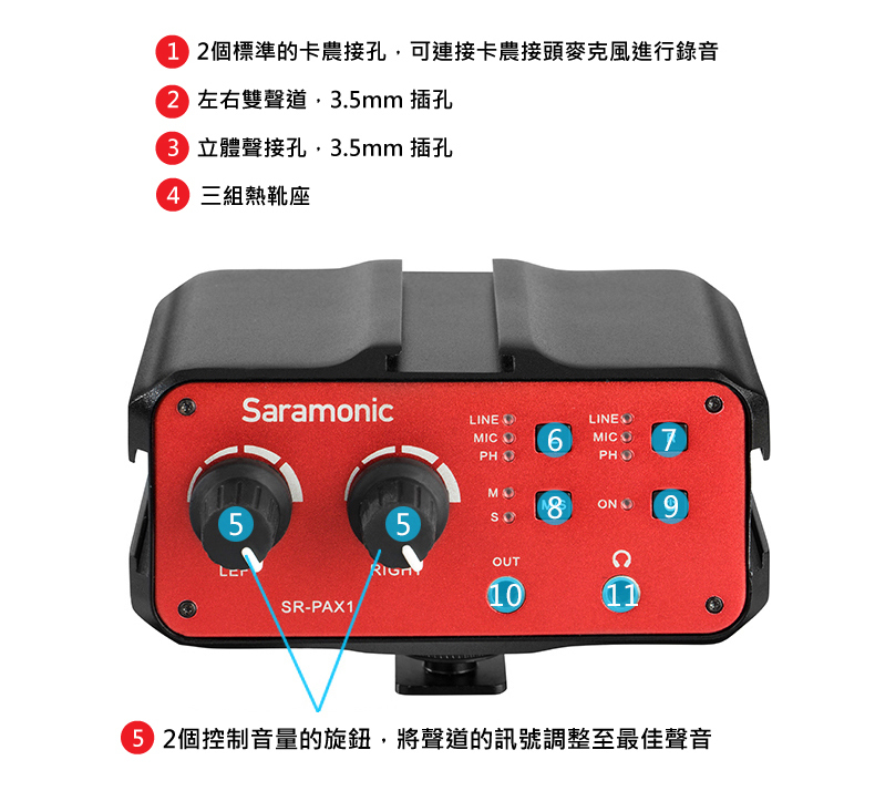 • 雙聲道控制旋鈕,方便調整至最佳聲音
