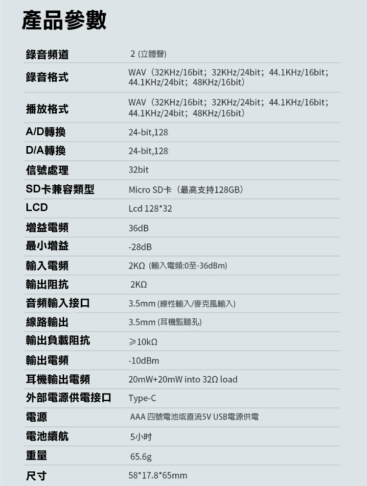 ■ 錄製高達48kHz/16bit.wav的音頻文件