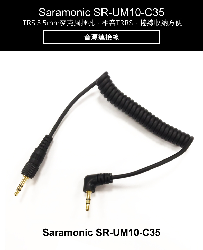 • 另一頭為鎖附式3.5mm,可用在UWMIC 9/10無線麥克風系統