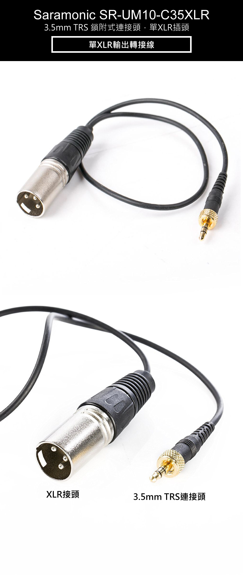 • 另一頭為鎖附式3.5mm,可用在UWMIC 9/10無線麥克風系統