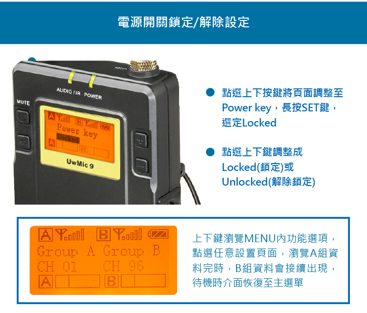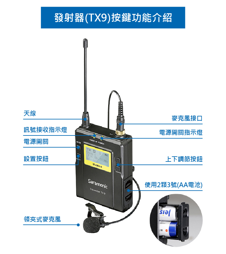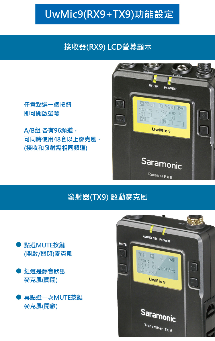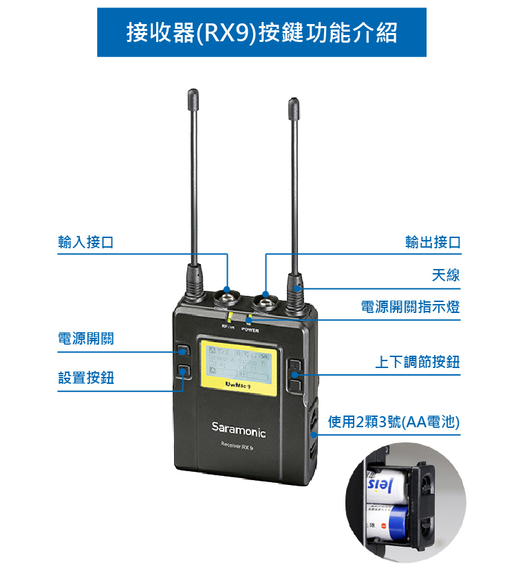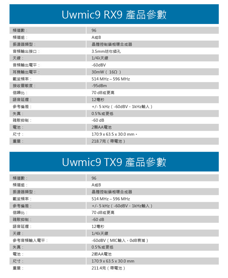 • 支援兩個發送器可以同時收音