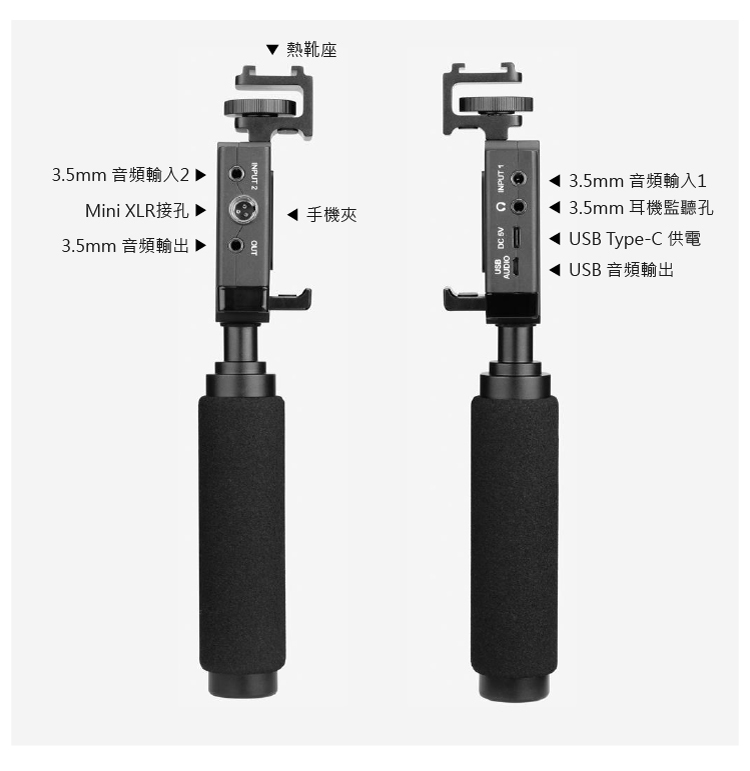 • 支援3.5mm耳機即時監聽(僅限相機模式)
