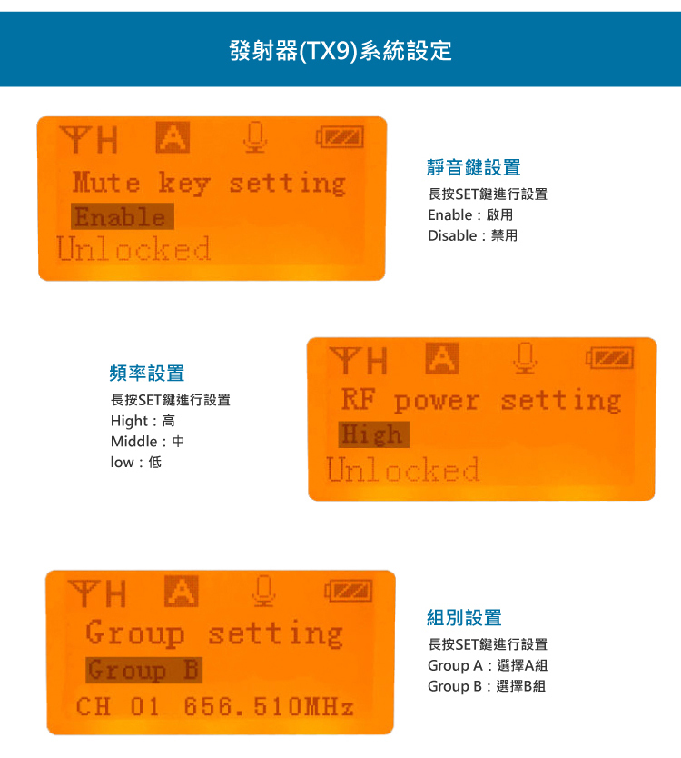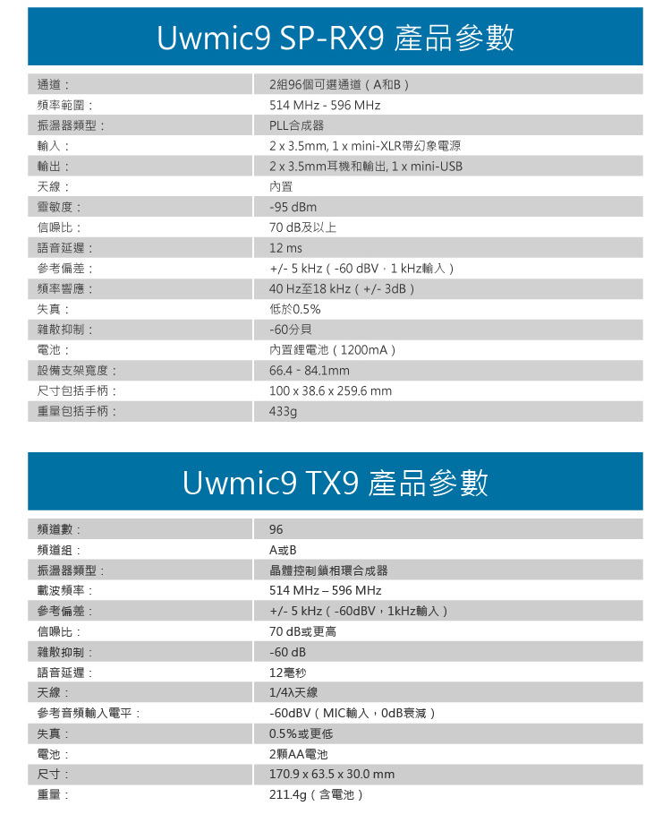 • 可同時接收兩組發射器的音頻