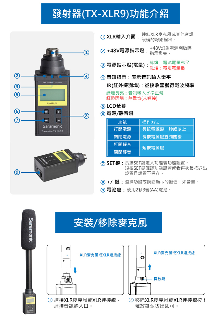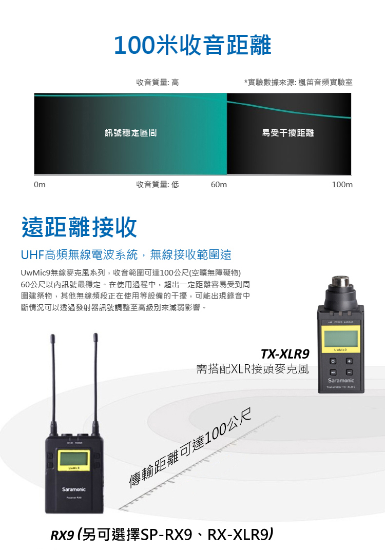 • 搭配UwMic RX9接收器