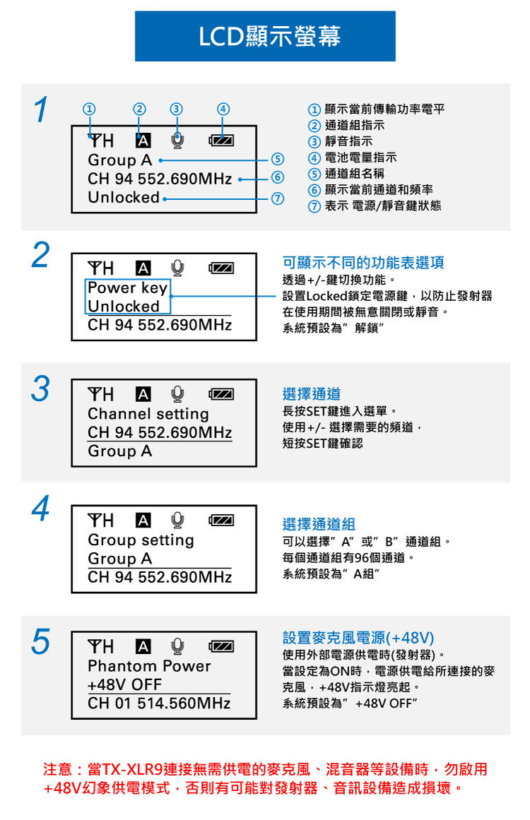 • UHF頻率範圍: 514MHz–596MHz