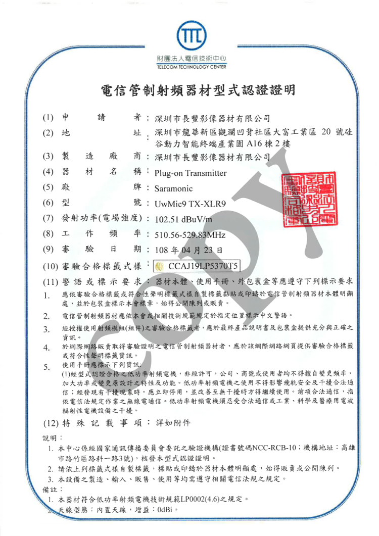 • NCC認證:CCAJ19LP5370T5
