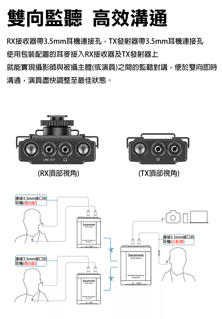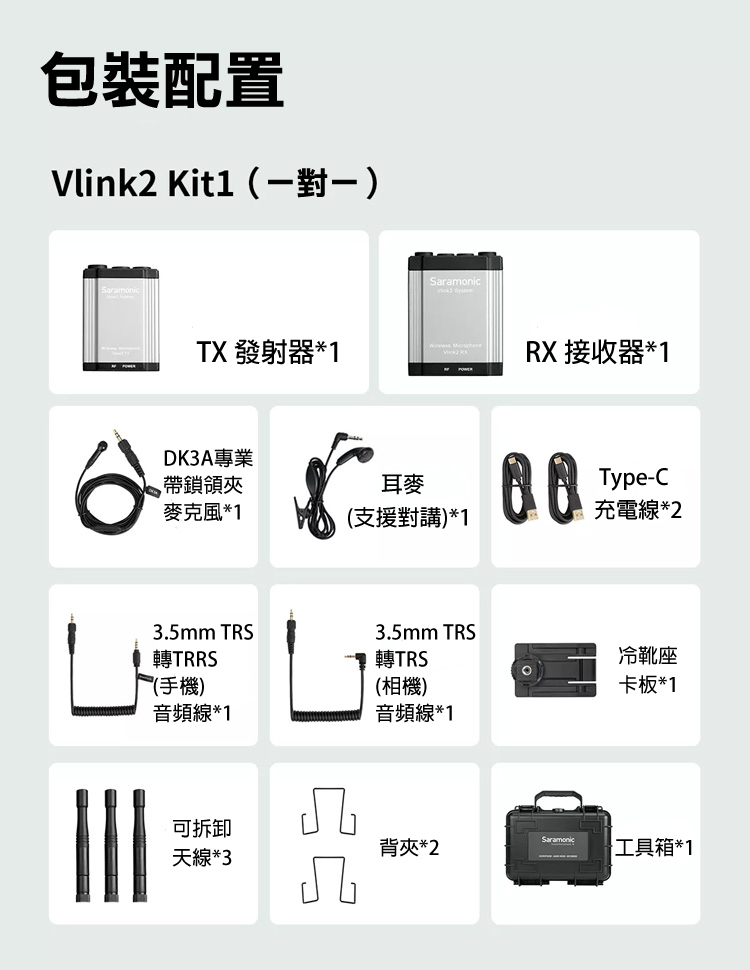 Saramonic楓笛 Vlink2 Kit1 (TX+RX) 一對一無線麥克風系统
