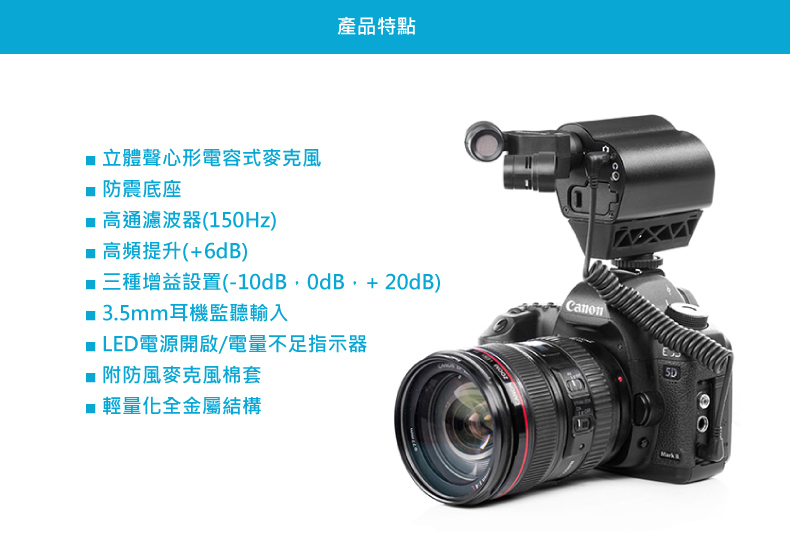 • 立體聲心形電容式麥克風
