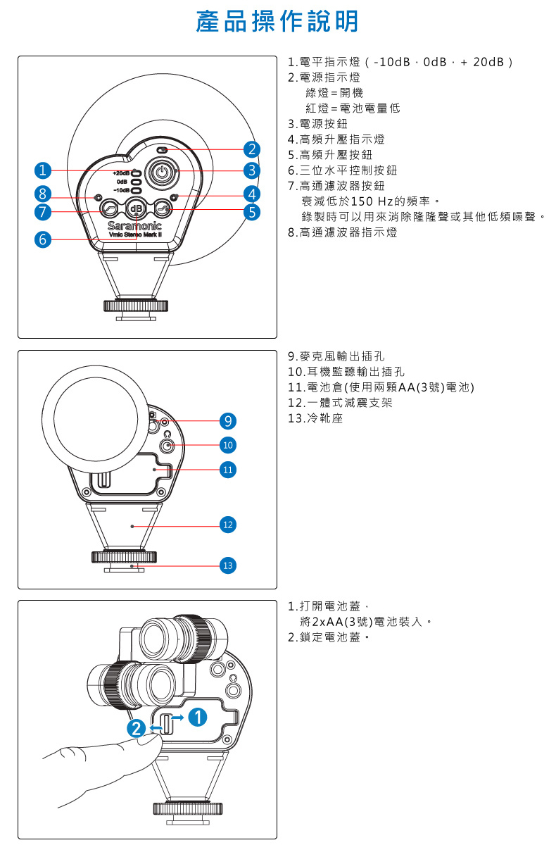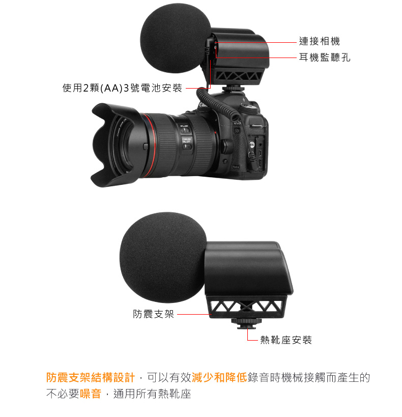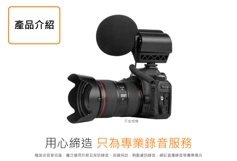 • 立體聲心形電容相機麥克風