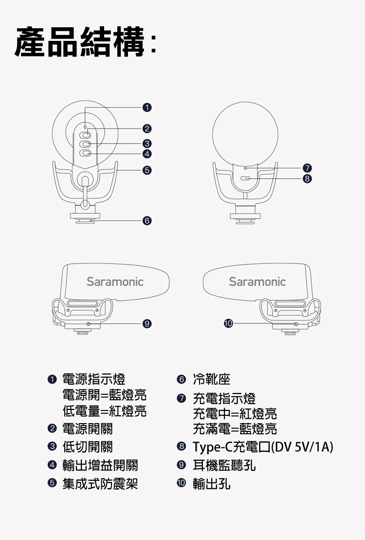 ■由內置電池和 USB-C(DC 5V/1A) 供電