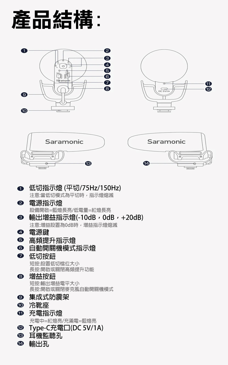 ■由內置電池或 USB-C (DC 5V/1A) 供電