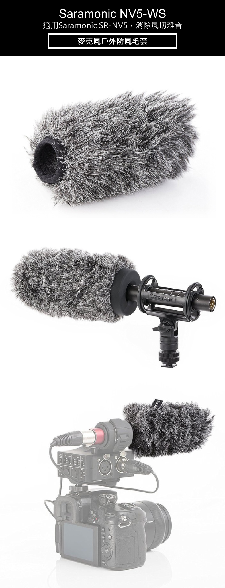 • 適用槍型麥克風Saramonic SR-NV5、SR-NV5X