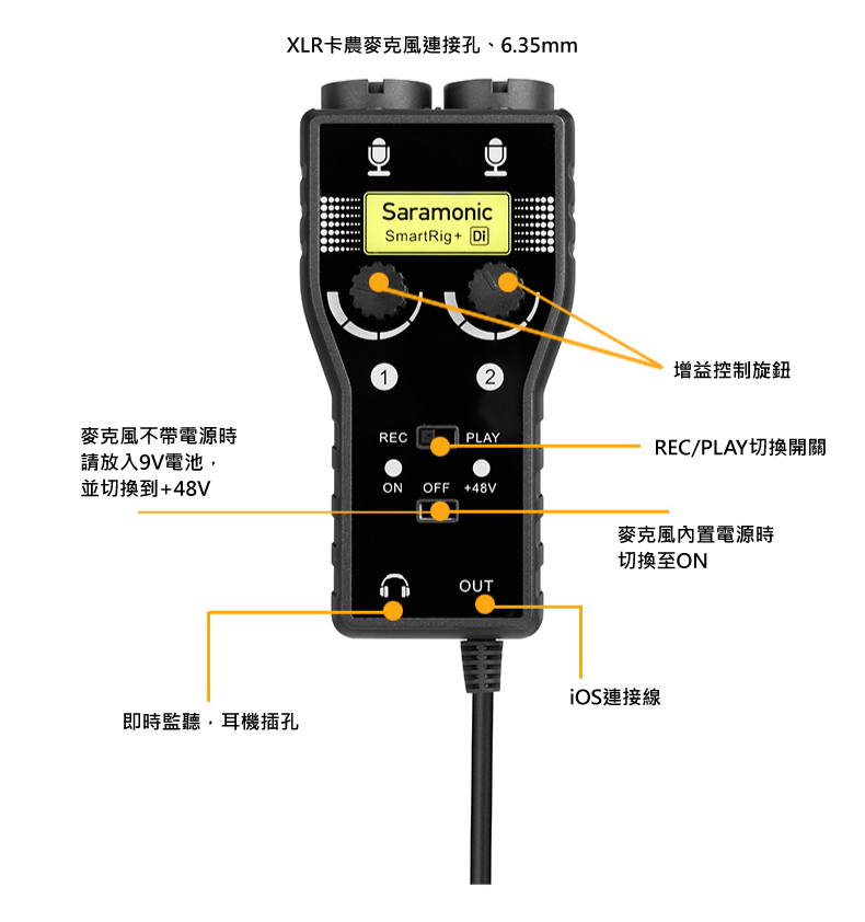 • 3.5mm耳機即時監聽(需使用APP,並支援即時監聽功能)