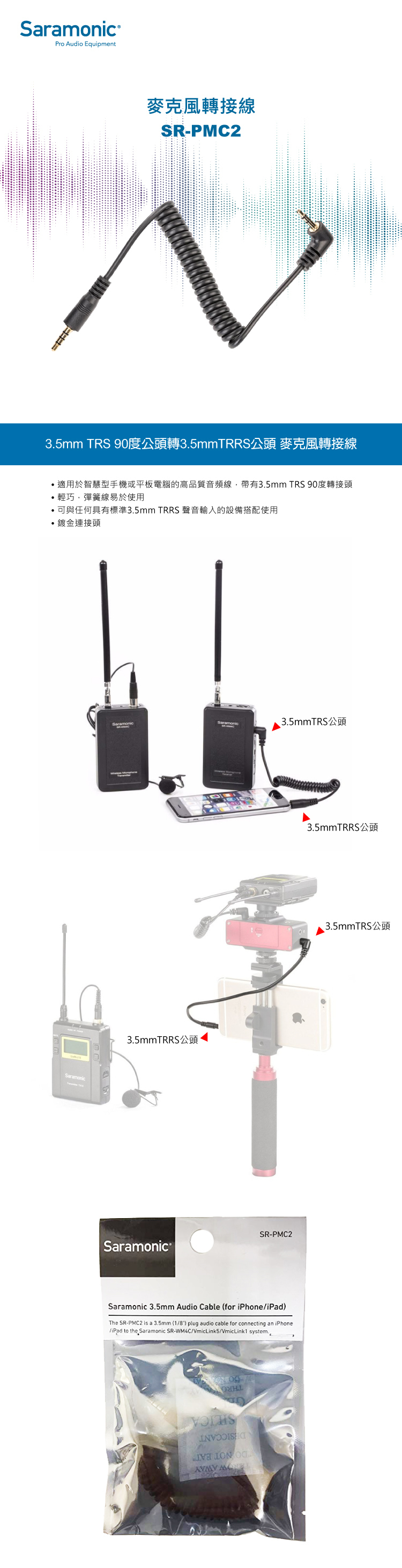 • 可與任何具有標準3.5mm TRRS 聲音輸入的設備搭配使用