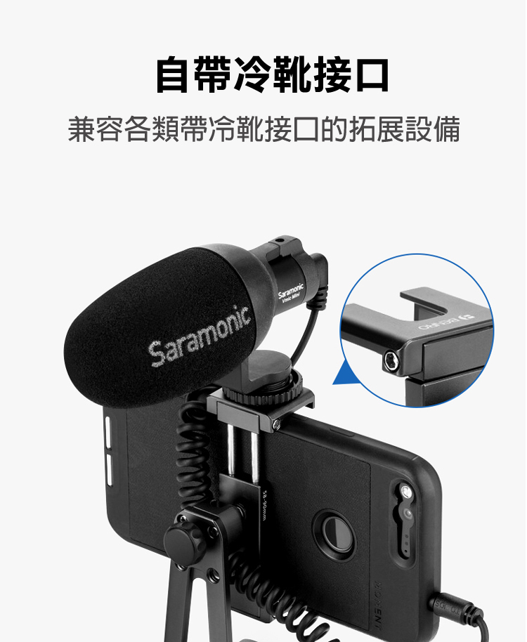 ■內置冷靴支架可用於安裝麥克風或其他配件