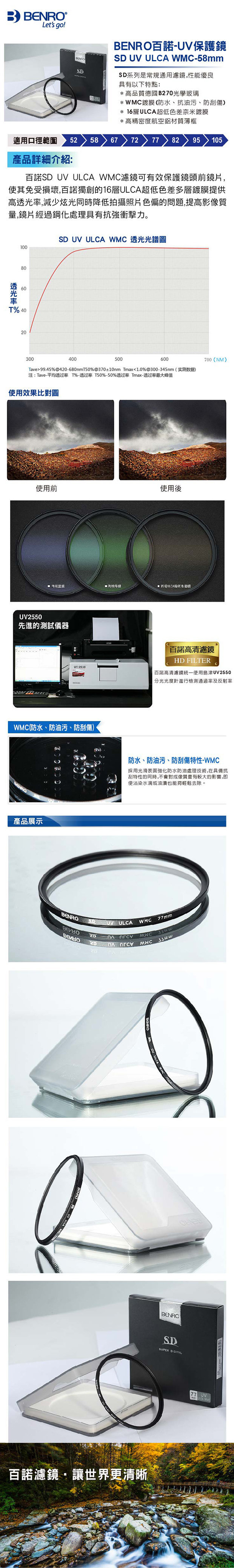 【BENRO百諾】 SD UV ULCA WMC UV保護鏡 58mm