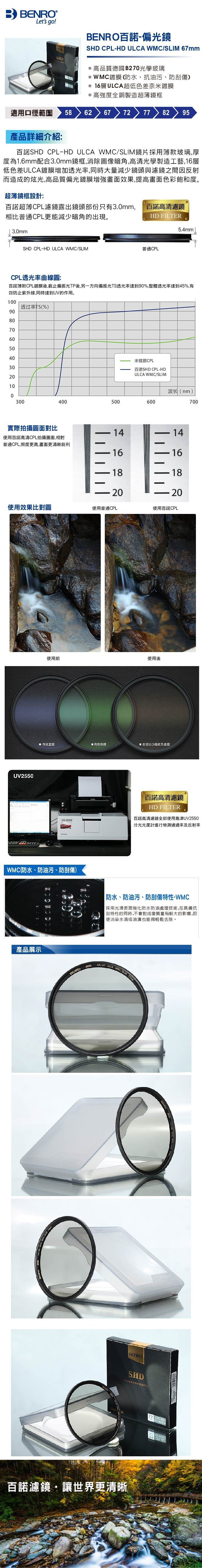 【BENRO百諾】 SHD CPL HD ULCA WMC/SLIM 偏光鏡 67mm